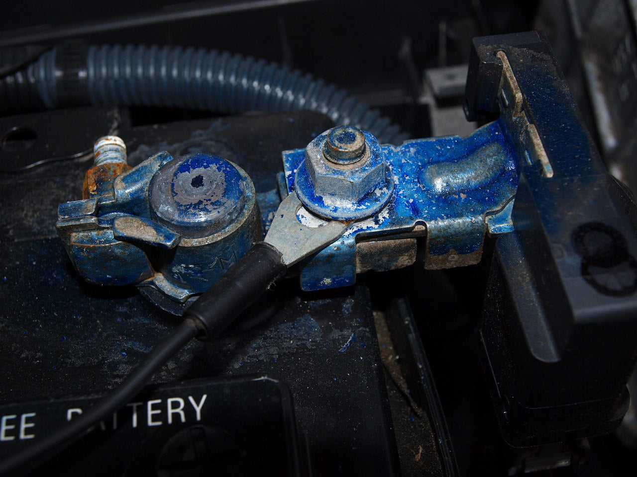 Untighten the nut on the NEGATIVE battery
