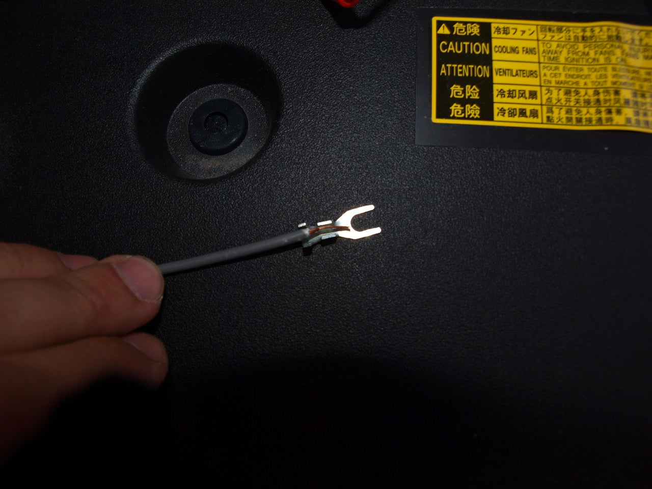 ground wire first. Tighten it down securely back again.